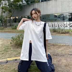 韓国ファッション スプリット 半袖 Tシャツ ゆったり D1823