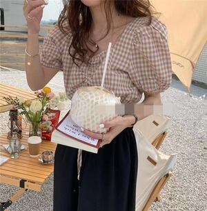 INSスタイル スリム ドローストリング パフスリーブ トップス sweet系 D1819