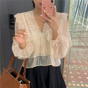 INSスタイル sweet系 Vネック ランタンスリーブ トップス D1811