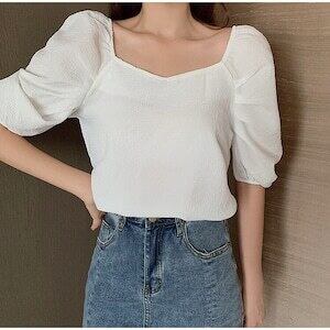 シンプルトップス スクエアネック パフスリーブ オフィスカジュアル D1810