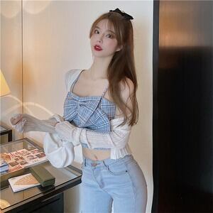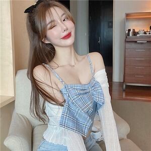 sweet系 蝶結び 格子縞 オープンウエスト ベアトップ D1803
