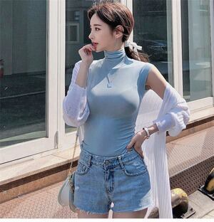 韓国ファッション ハイカラー スリムフィット ボトミング Tシャツ D1799