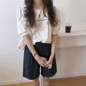 レトロ ラウンドネック ゆったり トップス スリム D1791