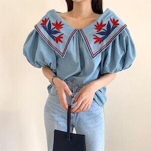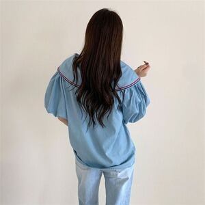 通勤 襟 オフショルダー ランタンスリーブ トップス D1732