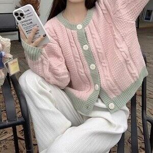 コントラストカラーカーディガン ニットカーデ ガーリー カジュアル E592
