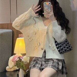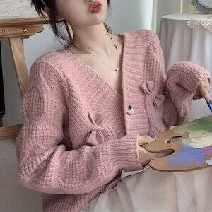 リボンニットカーディガン ショート丈 ガーリー デート E551