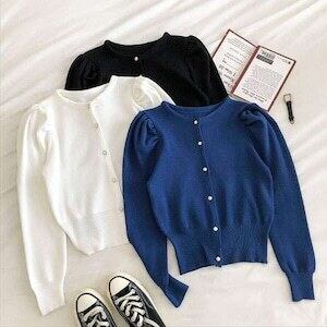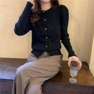 パフスリーブ カーディガン オフィスカジュアル ガーリー E138