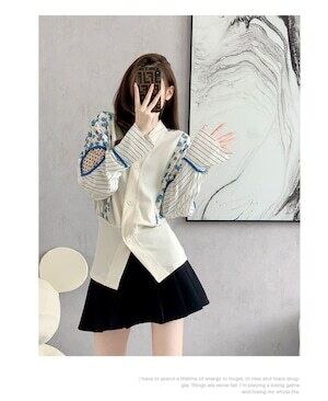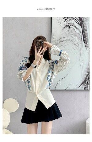 フローラル パッチワーク Vネック ニット カーディガン E056