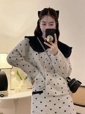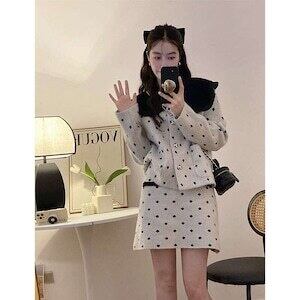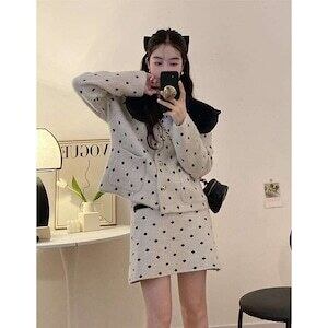 セットアップ★カーディガン スカート ドット ツーピース set up レディース 韓国 オルチャン 可愛い 通学 デート お出掛け E051