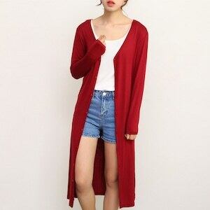 さらりとした肌触り、軽やかな着心地の薄手生地長袖ロングカーディガン