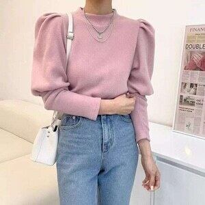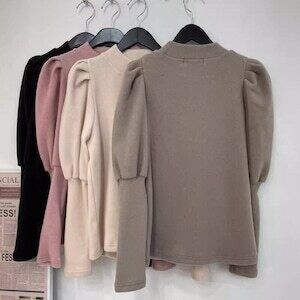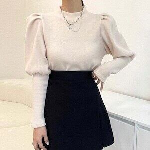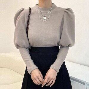 パフスリーブニット ボトルネック トップス カジュアル ガーリー E571