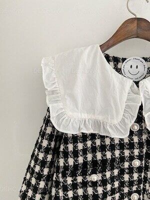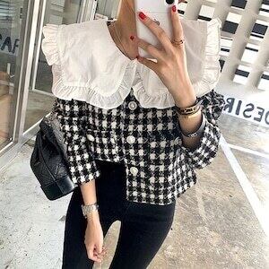 ビッグカラートップス 千鳥格子柄 パールボタン ショート丈 ガーリー E482
