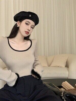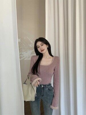袖ファートップス 長袖 フェミニン ガーリー E467