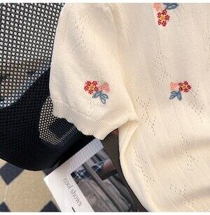小花柄トップス サマーニット ショート丈 ガーリー E125