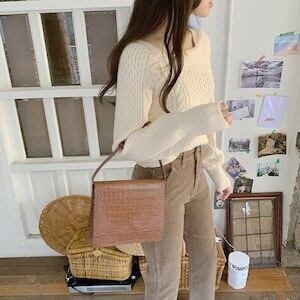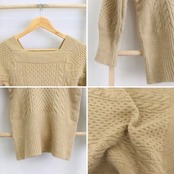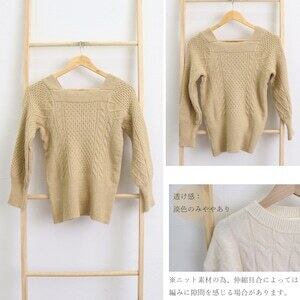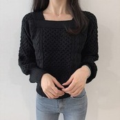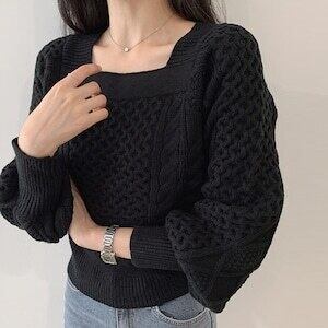 スクエアネックがデコルテをきれいに魅せてくれるマルチケーブル編み仕様のニットトップス