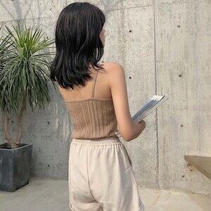 素肌に直接触れてもちくちくしない肌触りが優しいリブ仕様のニットキャミソール