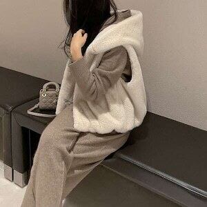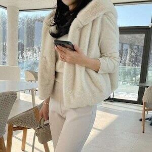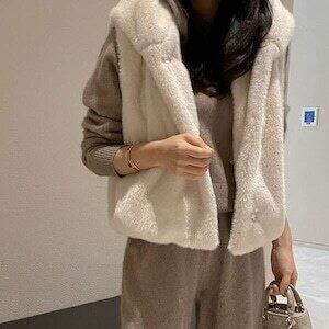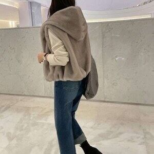 ファーベスト ジレ フード付き ショート丈 エレガント カジュアル E580