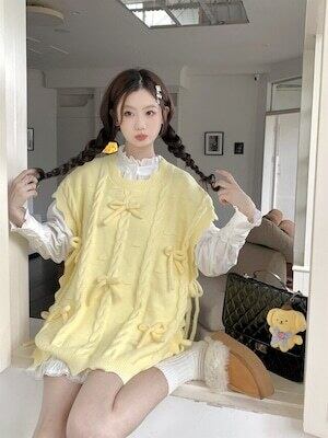 リボンベスト ニットベスト パステルカラー ガーリー E532