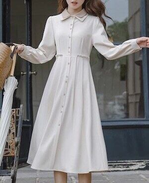 ダブルカラーワンピース レトロ ウエストリボン エレガント E563