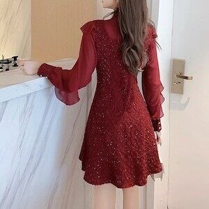グリッターワンピース フリルワンピ シアー ガーリー お呼ばれ E556